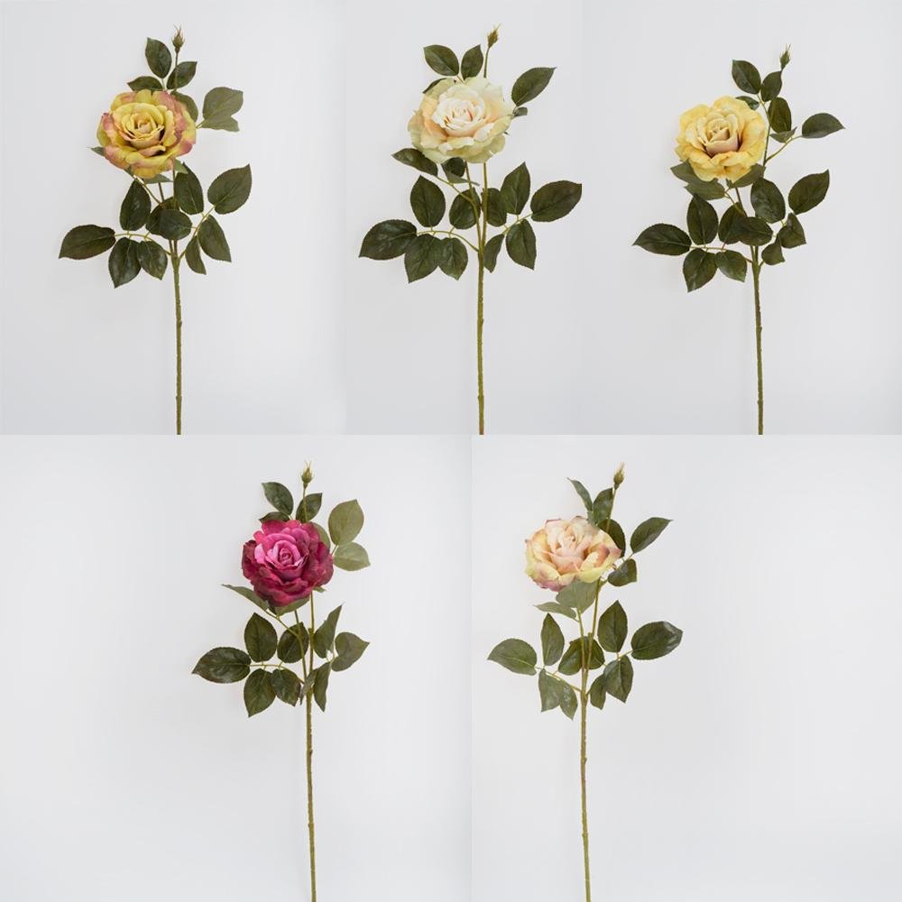 Dekoracja Ks ruža veľkokvetá, zeleň, mix/5f 68cm