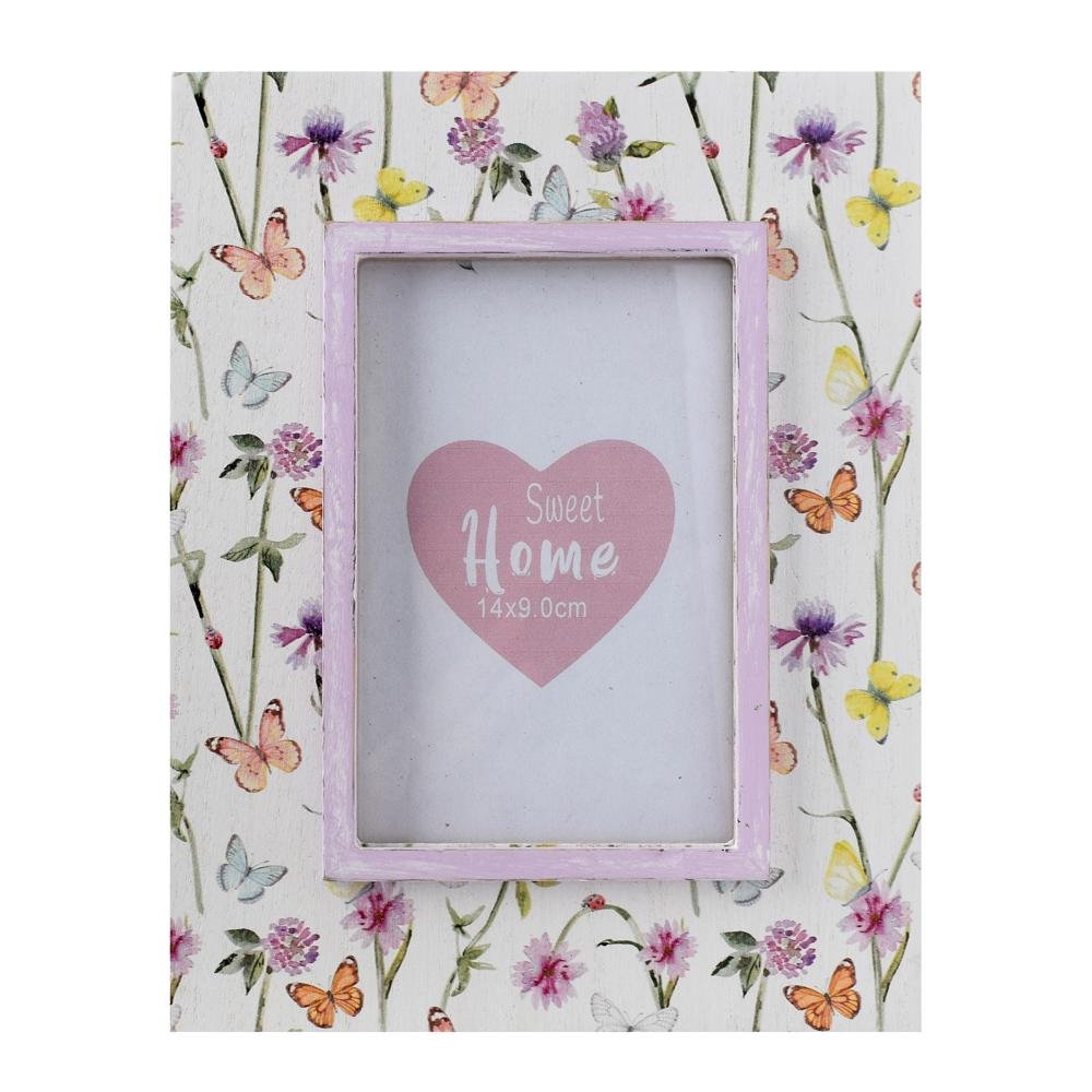 Dekoracja Rámik kvetinový motív bie/fia drevo 18*23*0,9cm
