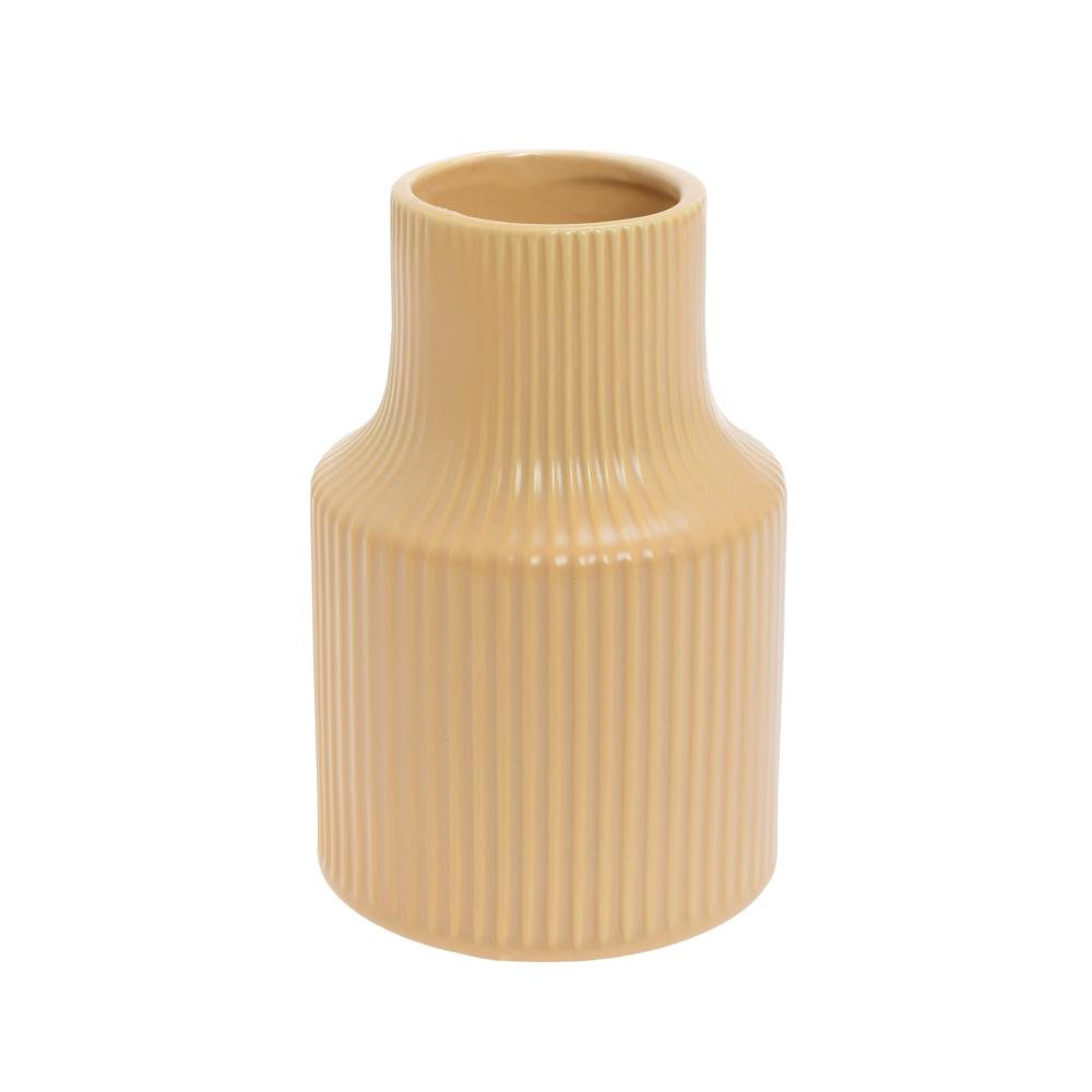 Dekoracja Váza pruhy keramika 10x10x15cm hnedá