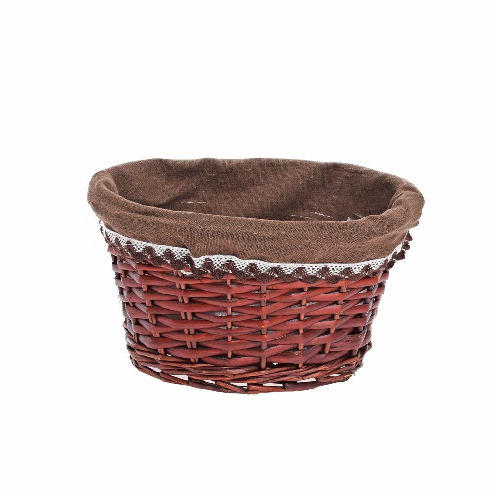 Dekoracja Prút. košík ovál tm.hnedý tm.hnedá látka 29x23x15cm
