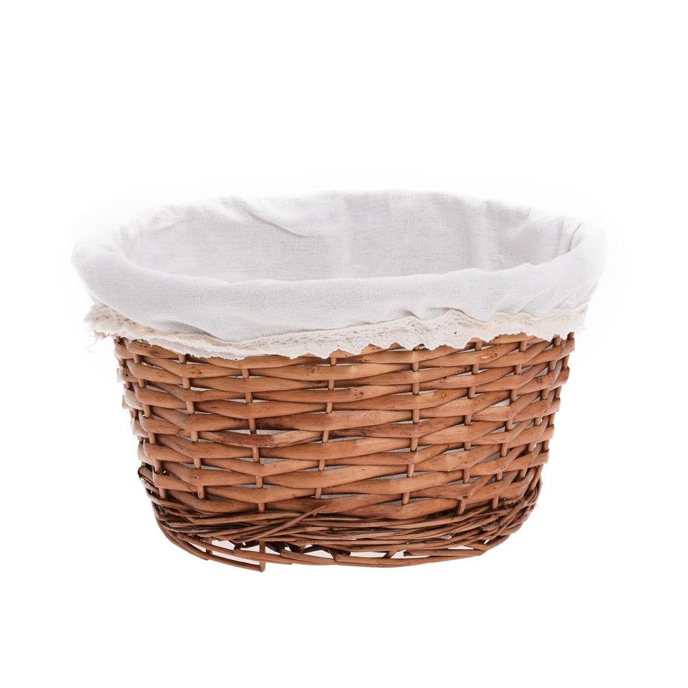 Prút. košík ovál hnedý biela látka 29x23x15cm