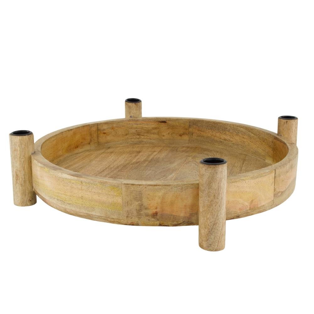Okrúhly podnos z mangového dreva so svietnikmi 38x43x10cm