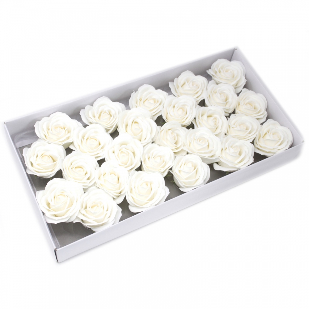 Mydlové Kvety - Veľká Ruža - Biela. Ponuka jedinečných mydlových kvetov. Príjemne voňajúce hlavičky kvetov v širokej farebnej škále. Vyskladajte si vlastné mydlové kytice, vhoďte lupene do kúpeľa a pozorujte, ako sa mydlo krásne rozpustí.