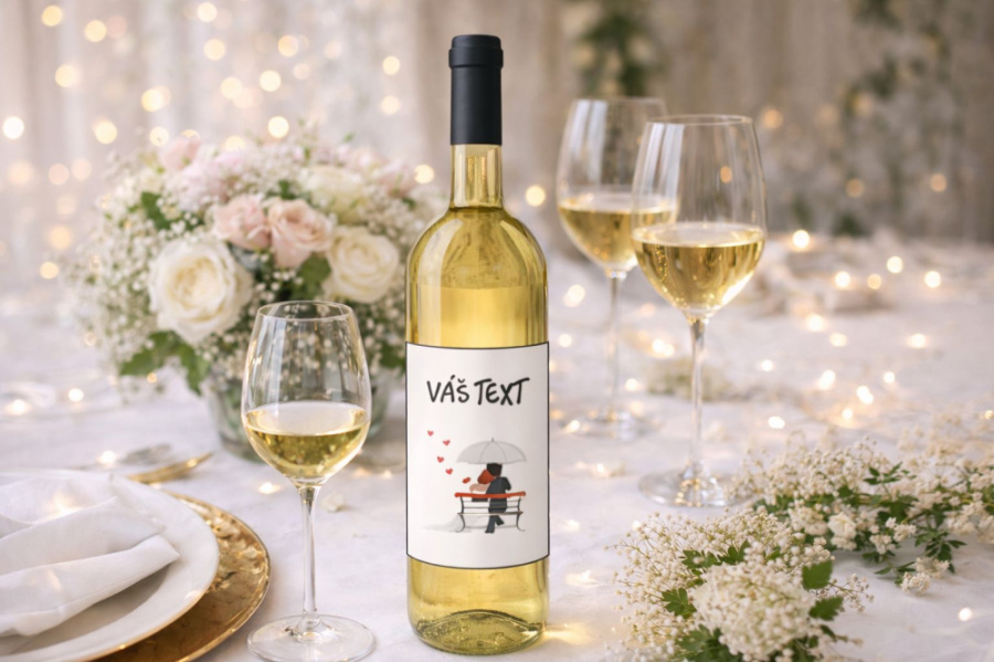 Svadobné víno pre hostí - Fľaša dobrého vína nesmie chýbať na žiadnom svadobnom stole. Nič však lepšie nedotvorí výzdobu a nepoteší hostí ako fľaše s vlastným motívom. Obrázok je ilustračný, reálny vizuál sa môže mierne líšiť.